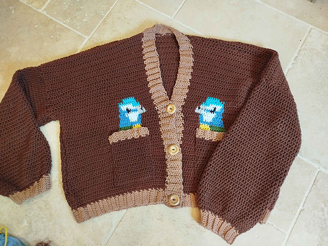 As far as projects go, I have finally finished my bird cardigan! Very comfy and I hope I'll be able to take better pictures for the galleries soon.