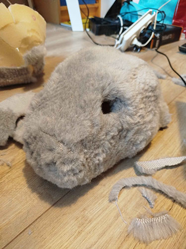 I've also been progressing a bit on my selkie costume when I was back home. I'm a bit disappointed by it so far, I feel like it looks like a furry manatee head more than a seal T-T. I'll see how it evolves with more shaving and painted details.